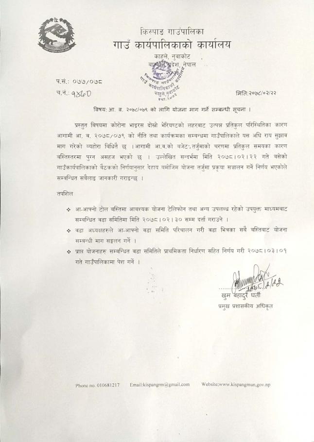 आर्थिक बर्ष २०७८/७९ को लागि योजना माग गर्ने सम्बन्धि सूचना