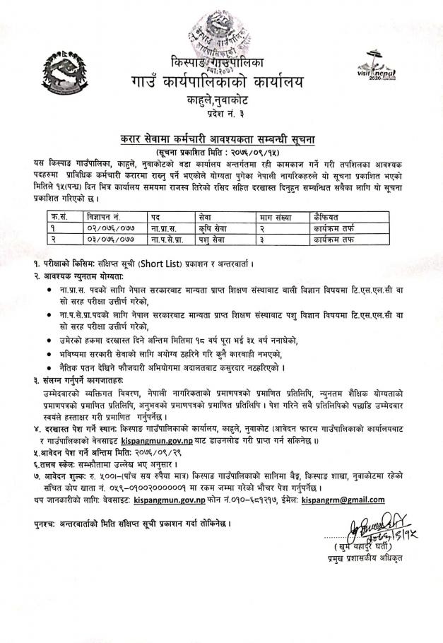 करार सेवामा कर्मचारी आवश्यकता सम्बन्धी सूचना